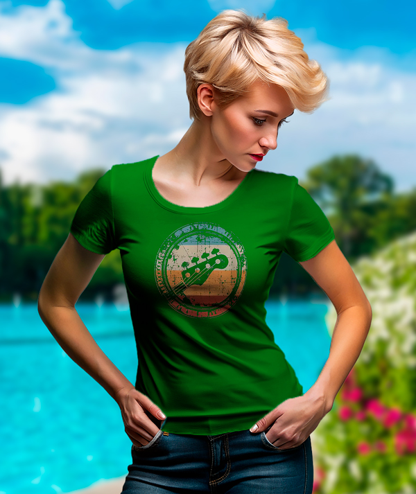 Дамска тениска с изображение на рисунка на китара в арт стил.