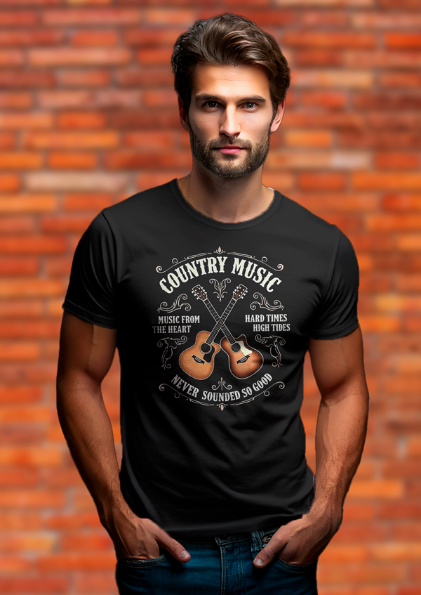 Мъжка тениска COUNTRY MUSIC с рисунка на  китара
