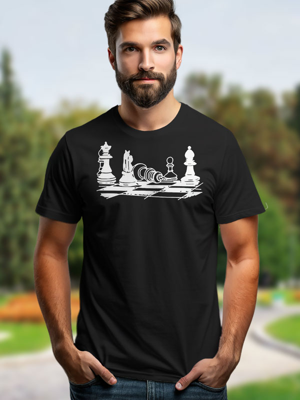 Класическа мъжка памучна тениска с къс ръкав с обло деколте без странични шевове от меко и издържливо гладко трико (обикновено жарсе).