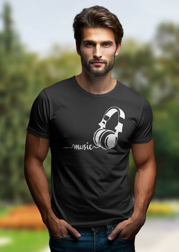 Мъжка тениска  с  рисунка на  слушалки